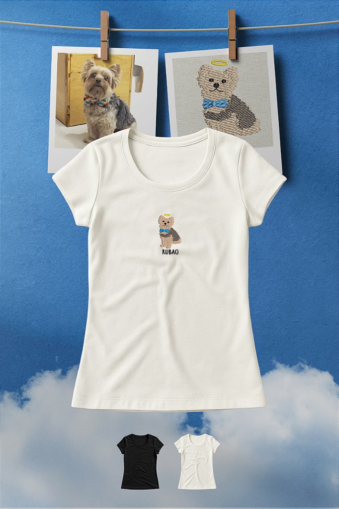 A Baby Look Eternize Memórias foi criada para manter por perto quem marcou sua vida. Dedicada a eternizar a imagem de entes queridos ou animais de estimação que deixaram saudade, a peça permite incluir uma delicada auréola sobre o homenageado. Feita em malha premium, oferece o toque macio do algodão egípcio para vestir suas lembranças com o respeito que elas merecem.