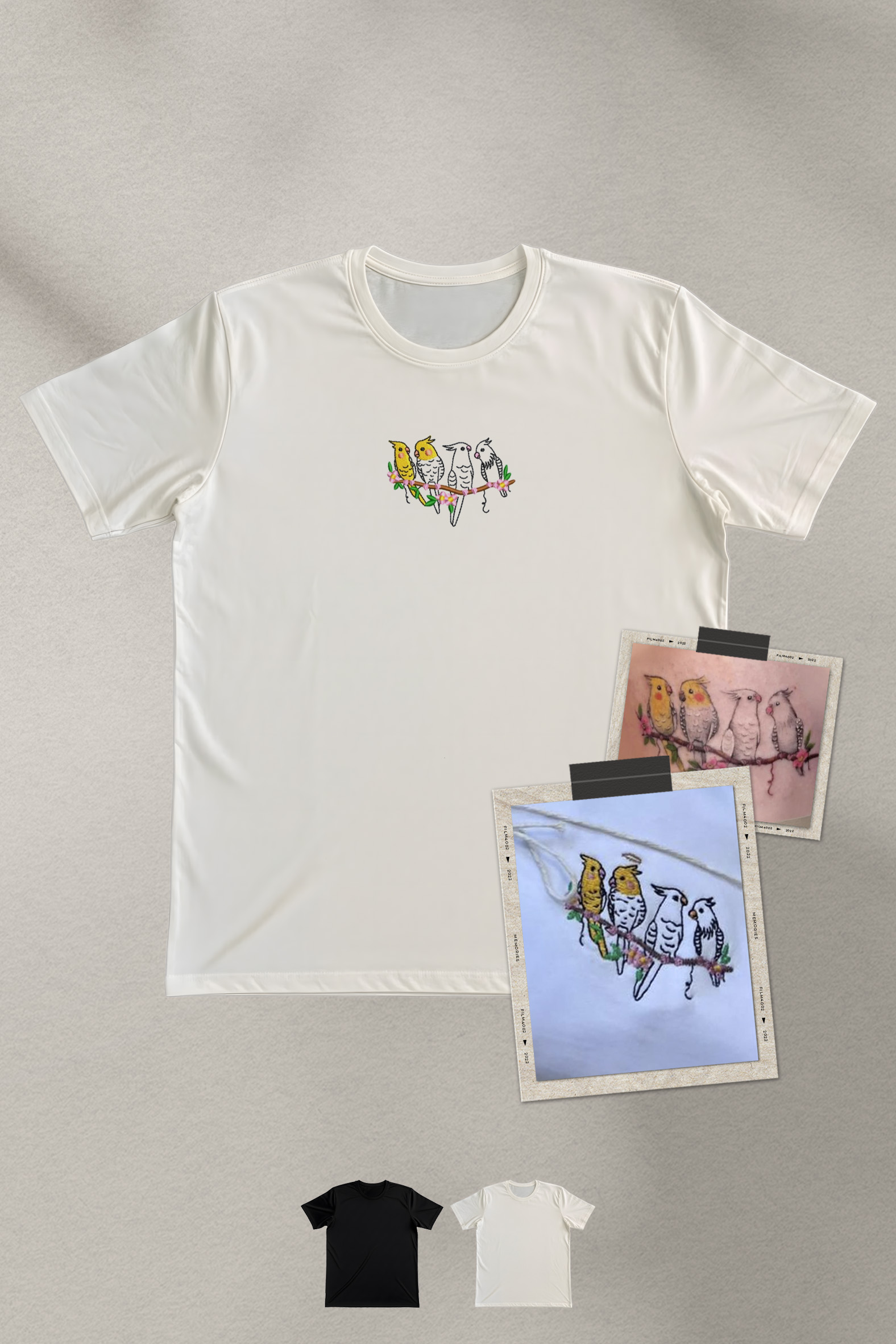 Transformamos suas memórias em bordados de alta fidelidade feitos sob encomenda. Confeccionada em malha premium de algodão egípcio com elastano, esta peça é uma homenagem personalizada, criada a partir das suas fotos e histórias, garantindo conforto, ótimo caimento e um item único e significativo.
