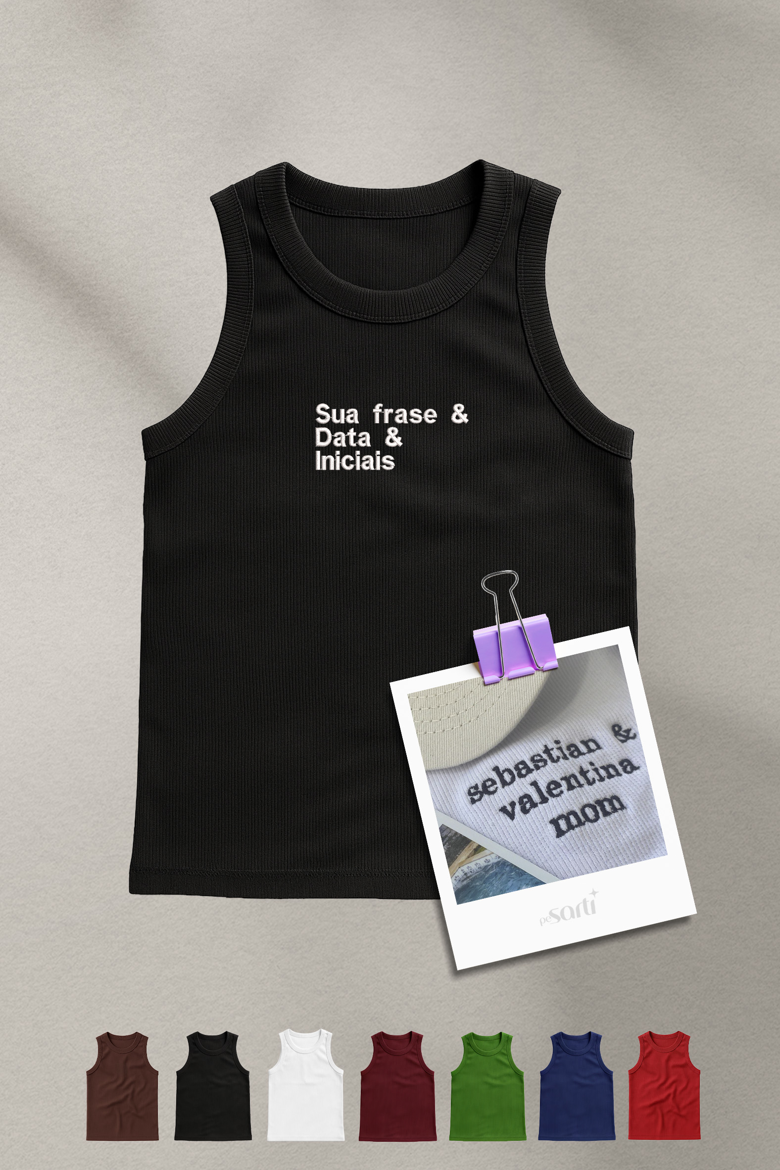 Leve, versátil e cheia de significado. A regata canelada Pesarti transforma memórias em bordados delicados, com conforto e elasticidade para o dia a dia.